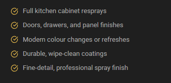 Refresh your kitchen without the cost of a full renovation. Our professional cabinet spray painting delivers a smooth, factory-grade finish that transforms tired cabinetry into a modern, durable centrepiece.
